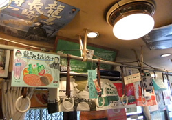 店内を見渡す限り電車グッズが盛りだくさん!さらに漫画の数も半端じゃない!お子様だけでなく大人も楽しめる空間。龍馬おみやげとしてちょうちんやお守りを販売するほか、きっちんせいじオリジナルの灰皿、手ぬぐい(各500円)もありますよ☆電車てぬぐい(630円)もあり長崎らしさ満点です!